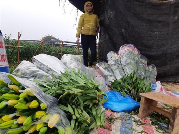 “Mọi năm trước Tết thời tiết thường nồm, đó là thời điểm thích hợp nhất để hoa ly nở, nhưng năm nay đến mùng 7 Tết rồi vẫn lạnh căm căm thế này thì làm sao hoa nở đúng vụ được”, người phụ nữ này nói.
