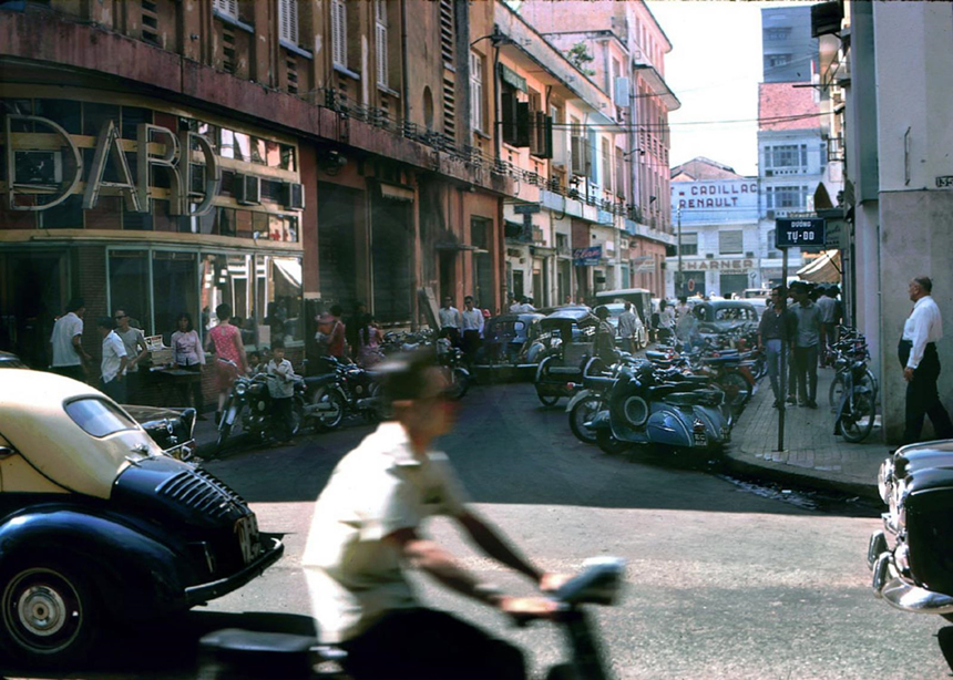 Ngã ba giao giữa đường Nguyễn Thiệp với đường Tự Do (nay là đường Đồng Khởi) với quán cà phê Brodard nổi tiếng được chụp vào khoảng năm 1967-1968. Ảnh: Flickr.