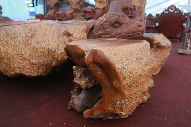 “Gỗ nu” là bướu gỗ, được hình thành từ sẹo cây, thường được chế tác bàn ghế, lục bình, tượng Phật.