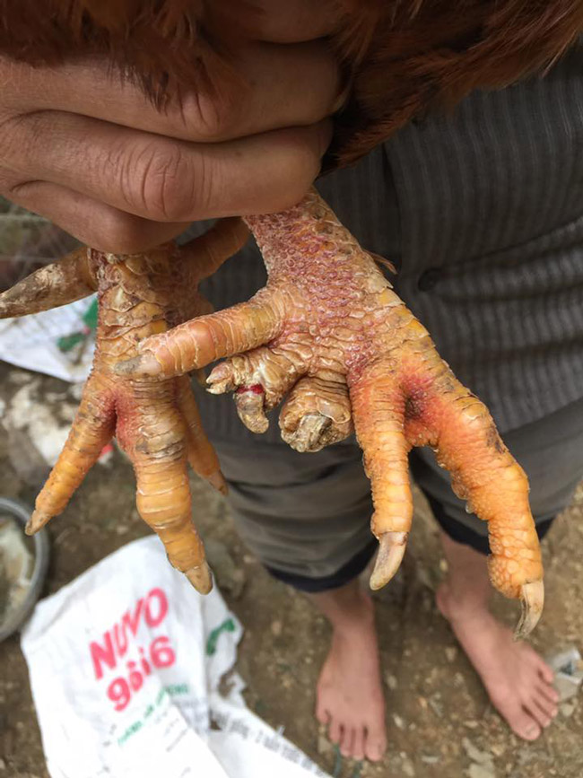 Chú gà có đôi bàn chân này đã được chủ nhân nuôi 4 năm và chỉ dùng cho việc nhân giống chứ không bán.