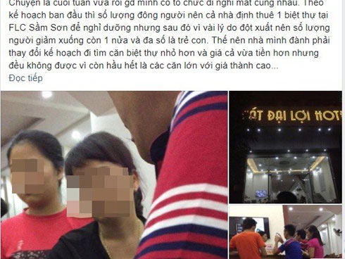 Theo kế hoạch, gia đình anh Đ. sẽ thuê một biệt thự ở ven biển, nhưng sau đó vì lý do khách quan nên buộc phải tìm thuê khách sạn bên ngoài để nghỉ. “Gia đình mình gọi điện khắp nơi nhờ bạn bè tìm đặt hộ nhà nghỉ tại Sầm Sơn nhưng tất cả các nhà nghỉ ở đây đều yêu cầu phải ăn tại đó thì mới cho thuê phòng.