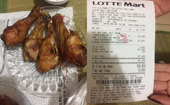 Theo phản ánh, ngày 25/8/2018, khách hàng tên T.T.H.Trang mua 04 đùi tỏi gà nướng tại quầy chế biến Lotte Mart Ba Đình khi về nhà phát hiện sản phẩm đùi gà tỏi có mùi và đã có phản ánh đến phòng Dịch vụ khách hàng Lotte Mart Ba Đình để khiếu nại.