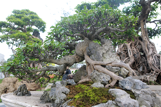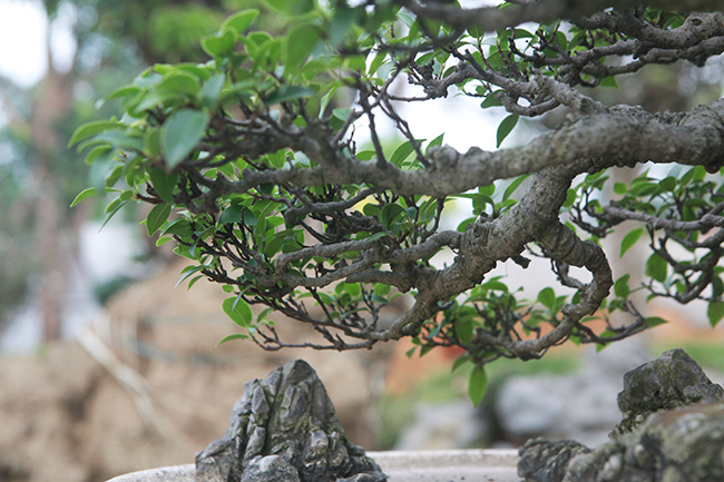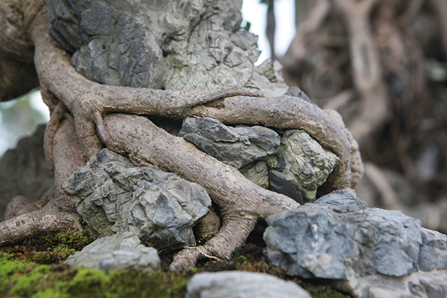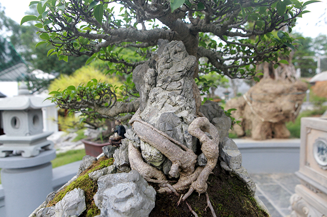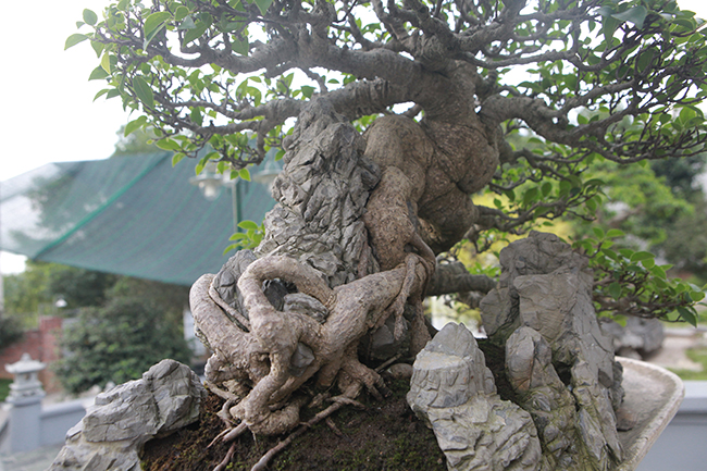 Rễ cây xù xì, trườn theo những khe đá rất khéo léo. Những nghệ nhân phải mất rất nhiều thời gian, công sức mới có được bộ rễ ký đá tuyệt đẹp như thế này.