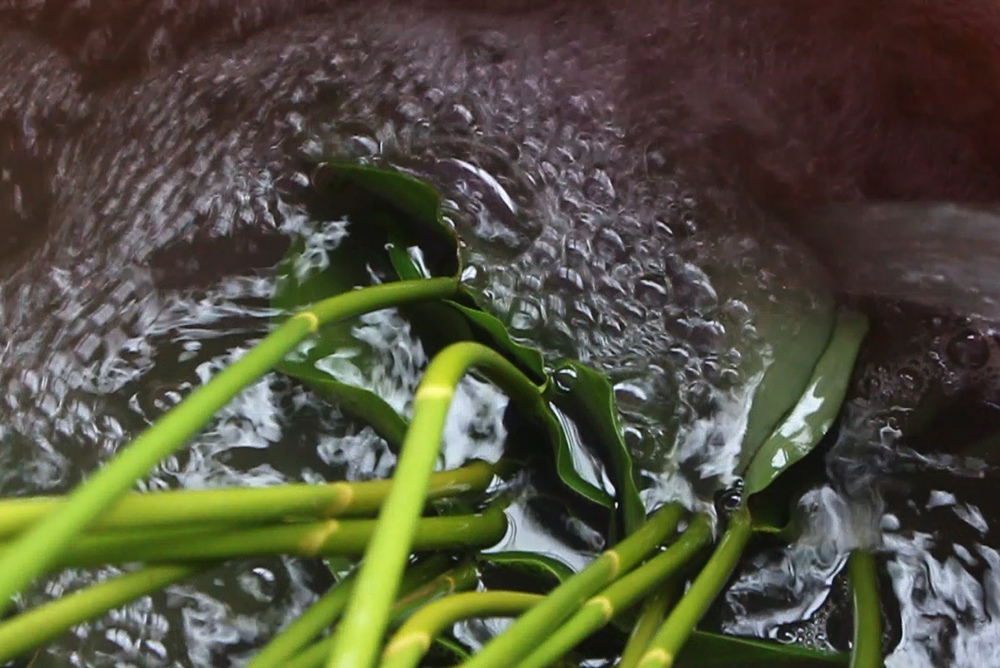 Lá dong rất ưa ẩm ướt nên thời điểm lý tưởng để cắt lá là tiết trời mưa phùn nhẹ.