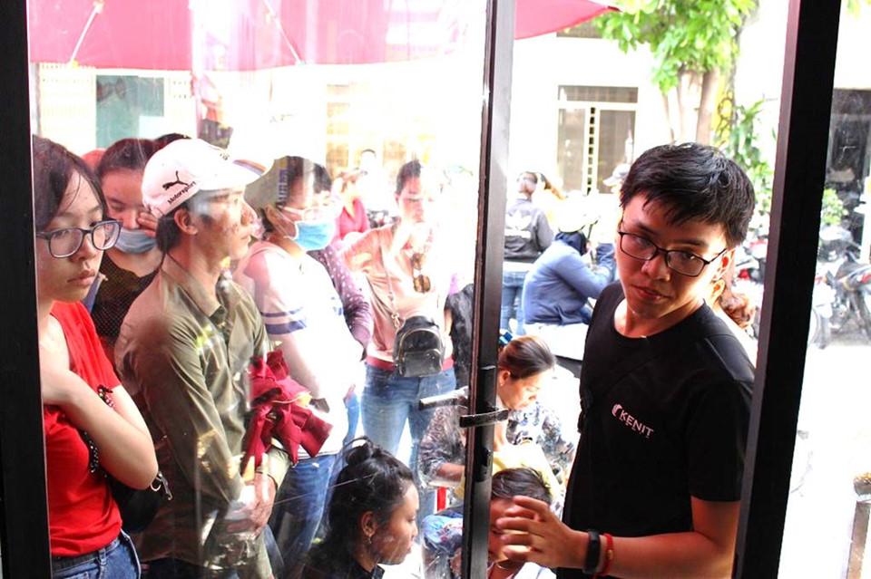 Vì quá đông người, các nhân viên phải liên tục điều phối khách xếp hàng. Mỗi đợt chỉ có 5 lượt khách vào bên trong lựa mua sầu riêng. Trung bình, mỗi người vào bên trong mua trong khoảng 15-20 phút.