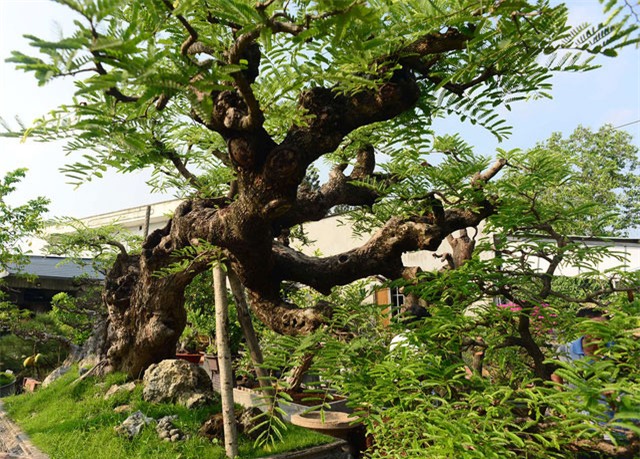 Cây me dáng "ba đầu rồng" hết sức "quái" ở trong vườn cây cảnh của ông Trịnh Công Minh đang được chăm sóc tại vườn cây cảnh ngã tư đường Bà Triệu - Song Hành Quốc lộ 22, thị trấn Hóc Môn, TPHCM