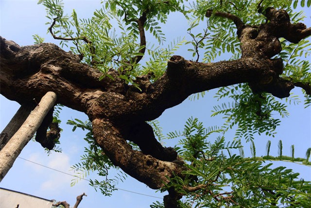 Đến gần quan sát mới thấy hết được độ quái hiếm có của cây me. Ba nhánh chính với các u nần nổi lên như ba đầu rồng trong tư thế muốn vút bay lên trời thể hiện khí chất dũng mãnh, quyết đoán, không bỏ cuộc.