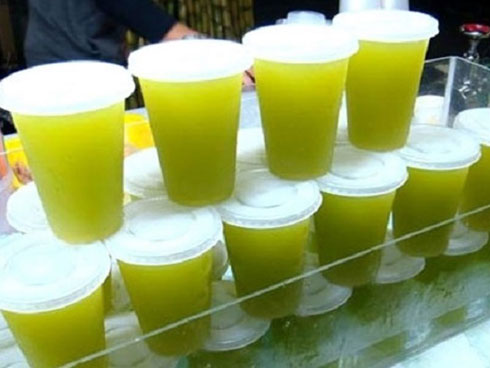Không chỉ khách du lịch, người địa phương cũng rất thích món nước mía sầu riêng của gia đình bà Nền. Nhiều người đến gọi mua mang về và trên tay lúc nào cũng có từ 3-5 ly nước mía.