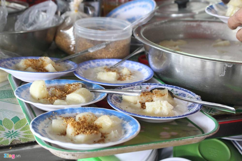 Ngoài nước mía sầu riêng được gọi nhiều nhất, khách hàng cũng rất thích món khoai mì (sắn) hấp nước cốt dừa. Khoai mì được hấp chín vừa phải, chan ngập trong nước cốt dừa và rắc thêm ít mè.