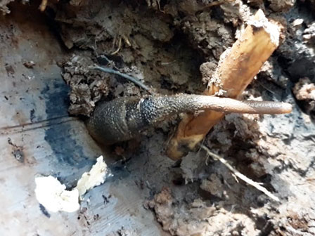 | Con sâm đất ở trong hang dưới lớp bùn, phải thật nhanh tay để kéo nó lên. |