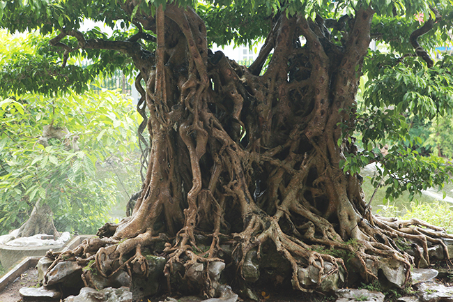 Bộ rễ cây lan tỏa xung quanh, bám vào đất, đá rất vững trãi, nhìn như những củ nhân sâm nhiều năm tuổi bám trên đá.