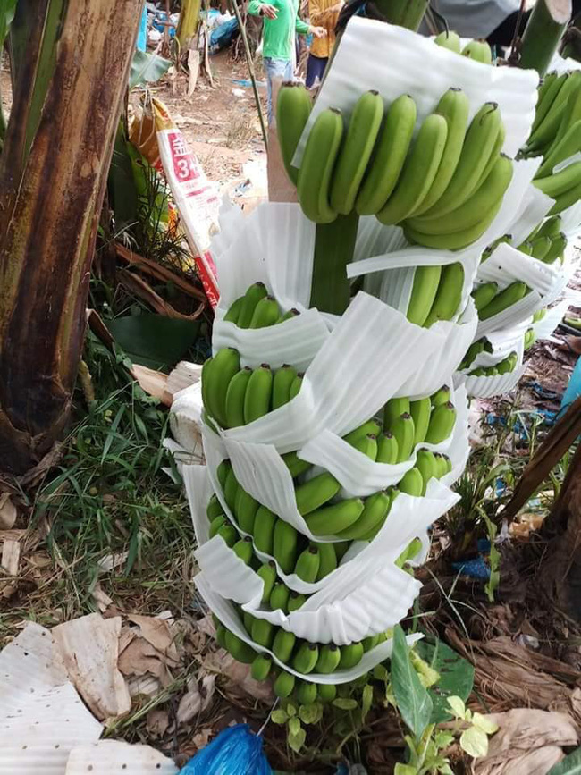 Anh Vũ cho biết, thời điểm này anh thường đến các hộ dân có vườn chuối lớn để thu mua lại cả vườn. Sau đó anh bán buôn cho nhiều tiểu thương khác với giá chỉ 4k/kg chuối xanh. Một số vườn chuối xanh đẹp, anh Vũ sẽ để gần Tết chở xe xuống Hà Nội bán lẻ ở các chợ Tết.