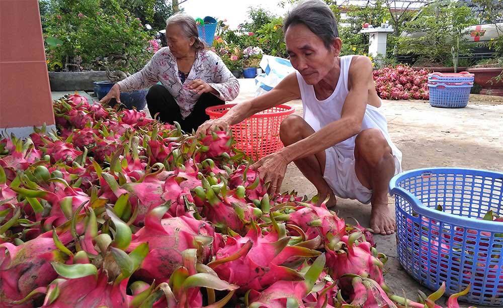 Tuy nhiên, gần đây, thời tiết thuận lợi, nông dân đồng loạt không lặt bông dẫn đến sản lượng lớn khiến nguồn cung dư thừa, giá giảm. Trong khi đó, đầu ra thanh long phụ thuộc vào thị trường Trung Quốc chiếm đến 70-80%.