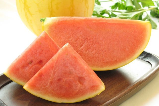 Dưa hấu Golden Fortune không hạt, cùi mỏng, nhiều thịt.