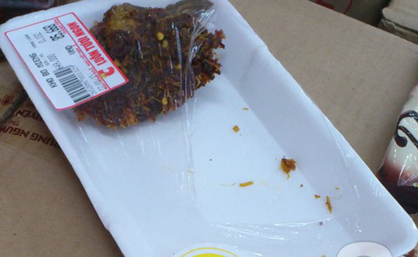 Khay thịt bò khô này có giá 85 ngàn đồng nhưng bị ăn gần hết. (Ảnh: Afamily)