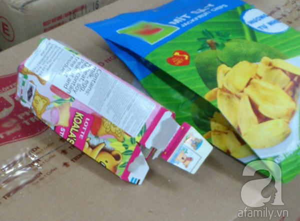 Một hộp snack khoai tây mất vỏ còn chưa ăn hết bị khách hàng bỏ lại tại siêu thị Auchan. (Ảnh: M News).
