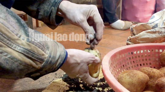 Điều đáng nói là các bao chứa khoai tây chẳng có một nhãn mác, nơi sản xuất mà chỉ thấy các thương lái Trung Quốc tất bật ghi chép sổ sách, đưa hàng lên, xuống xe.