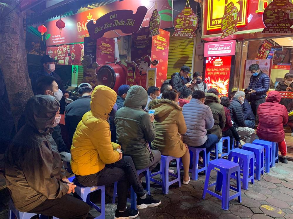 Ngày vía Thần tài, nhiều người dân Hà Nội đã tới xếp hàng trước các cửa hàng từ tờ mờ sáng để mua vàng lấy may ngày vía Thần tài. Có người tới xếp hàng từ 2 giờ sáng để mua vàng.