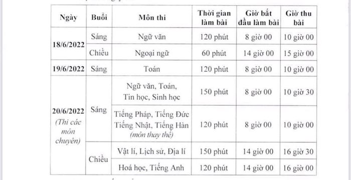 Lịch thi, thời gian thi chi tiết thi vào lớp 10 tại Hà Nội