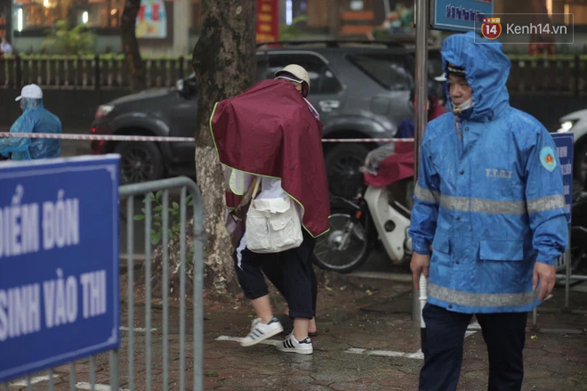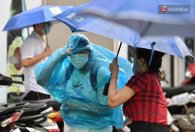 Điểm trường THPT Lê Quý Đôn cũng xuất hiện mưa lớn, có một vài trường hợp thí sinh quên máy tính dù hôm nay là buổi thi Toán, phụ huynh phải đánh ô tô đi mua mới: