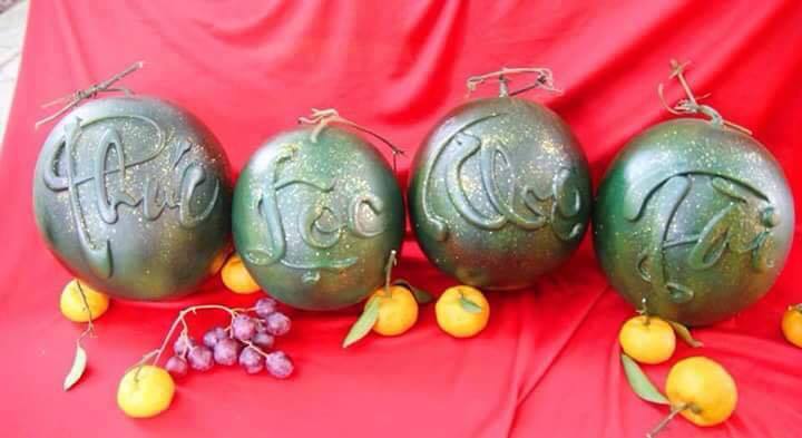 Cùng với bưởi, Phật thủ, tết năm nay nhiều nhà vườn ở Miền Tây tiếp tục tung ra thị trường các loại dưa hấu có chữ Tài - Lộc – Phúc – Thọ, dưa hấu vuông, dưa hấu thỏi vàng.... với giá từ vài trăm nghìn đồng đến hơn hai triệu đồng/cặp.
