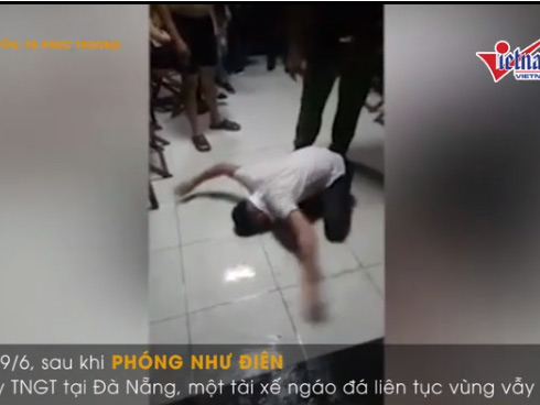 Sau khi gặp phải tình huống bất ngờ, người đàn ông này vẫn có thể tự bơi dưới nước trước khi được bạn kéo lên bờ.