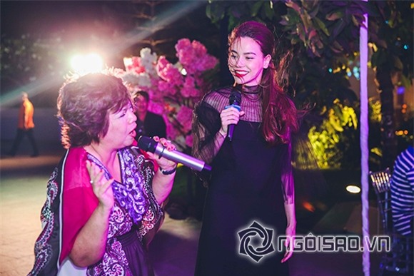 Hồ Ngọc Hà vui mừng khi gặp và trò chuyện cùng các nghệ sĩ, bạn bè có mặt trong buổi tiệc. Trong không khí vui vẻ và ấm cúng, Hồ Ngọc Hà đã hào hứng hát tặng thực khách một vài ca khúc, cô cũng hòa giọng cùng doanh nhân Lệ Hằng một bài nhạc Pháp lời Việt với phần đệm đàn của nhạc sĩ Minh Khang.