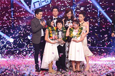 Đêm chung kết Giọng hát Việt nhí 2014 diễn ra tối 4/10 tại TP HCM. Giải Quán quân thuộc về Nguyễn Thiện Nhân (phải), thí sinh của đội Cẩm Ly. Cô bé đoạt giải thưởng trị giá 300 triệu đồng. Trong khi đó, giải nhì thuộc về hai bé Hoàng Anh và Thiên Nhâm (trái) với giải thưởng 55 triệu đồng. Kết quả này trùng hợp với dự đoán của độc giả . Trong cuộc khảo sát thu hút gần 10.000 lượt bình chọn, phần lớn dự đoán Thiện Nhân giành chiến thắng. |