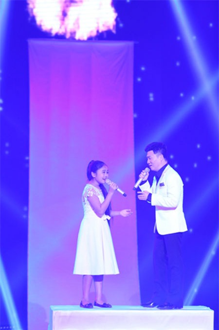 Không chỉ hát ngọt ngào bên huấn luyện viên, Thiện Nhân cũng tỏ ra tự tin khi đứng trước Quang Linh - ca sĩ khách mời. Cả hai thể hiện ca khúc "Đèn khuya" cho phần thi thứ ba. Chất giọng trong trẻo của cô bé hoà quyện cùng tiếng hát truyền cảm của nam ca sĩ làm người nghe bồi hồi. Suốt phần biểu diễn trên sân khấu, có những lúc gương mặt Thiện Nhân dường như muốn khóc. Mỗi lần như vậy, cô bé đều nhắm mắt để ổn định cảm xúc và tiếp tục bài hát. |