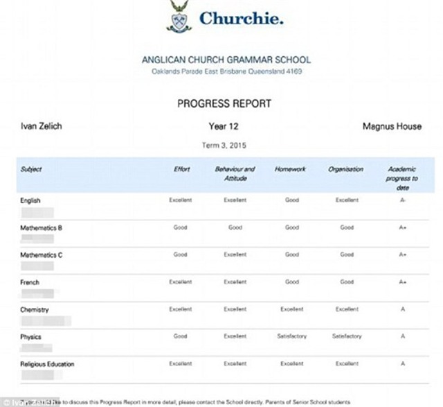 Bảng thành tích học tập xuất sắc tại trường của thiên tài 17 tuổi. Ảnh: Ivan Zelich.