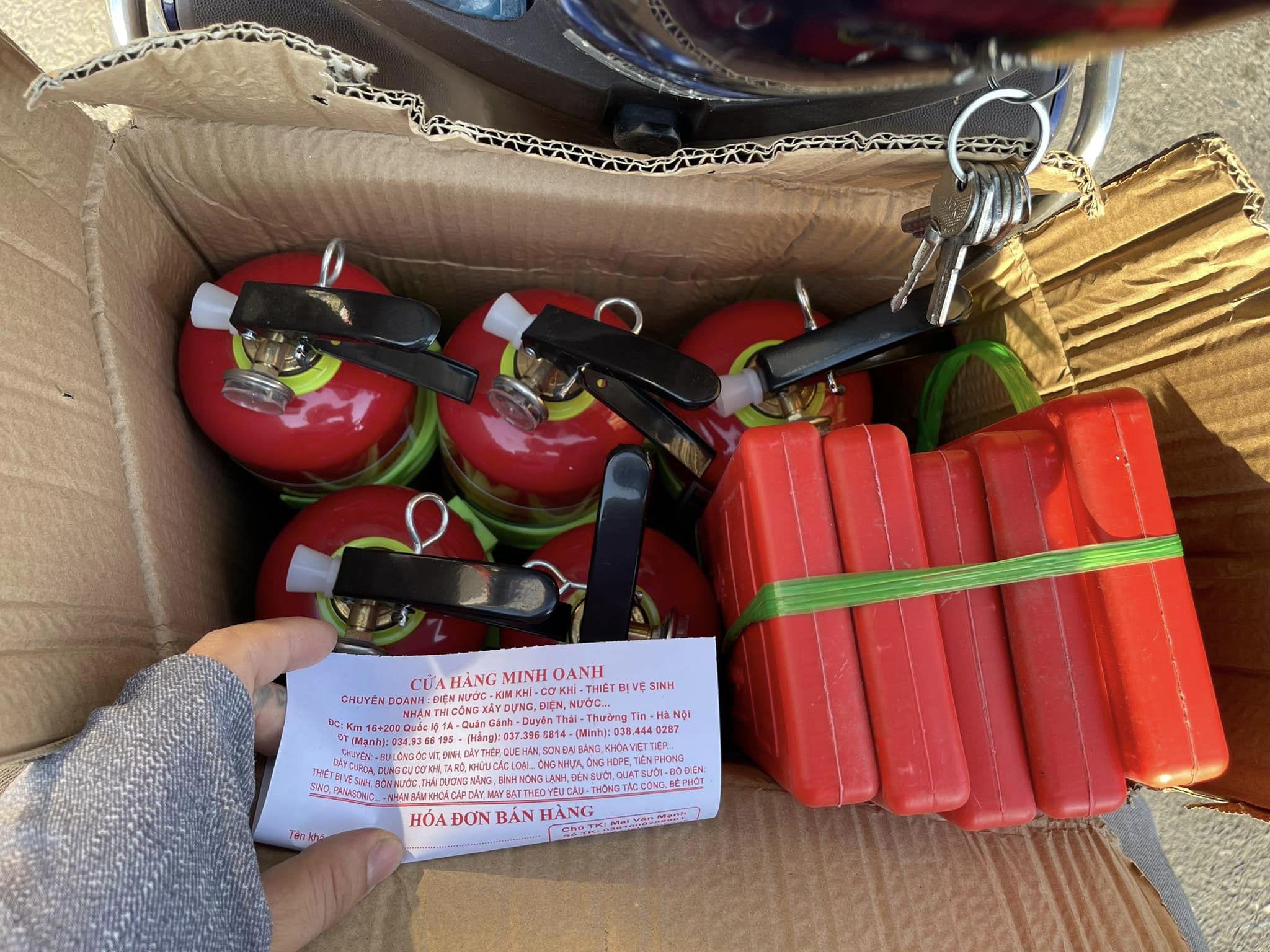 Bình cứu hỏa anh Mạnh chuẩn bị đi ship cho khách.
