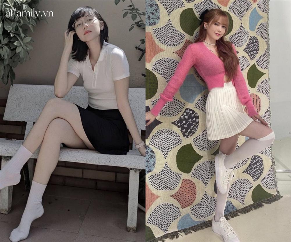 Hải Tú và Thiều Bảo Trâm còn đụng độ trong khoản lên đồ trẻ trung hack dáng như nữ sinh với áo dáng ôm và chân váy ngắn. Về phần Hải Tú cô chọn bộ cánh mang tông đen trắng đơn giản, đi tất trắng, mái tóc ngắn khiến Hải Tú càng thêm phần cá tính hiện đại. Ngược lại về phần Thiều Bảo Trâm mẫu áo len hồng mang đến cảm giác ngọt ngào nữ tính trẻ trung, cô còn cố tình để hở khuy áo dưới giúp tôn lên vòng eo thon thả, style thêm vài phần ngổ ngáo