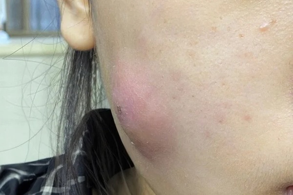 Bác sĩ Hoàng Huy Tú, Khoa Nội tổng hợp, chia sẻ: “Từ một nốt mụn bọc tại vùng trán, bị nhiễm trùng, mẩn đỏ, sưng to, do dùng tay nặn, bệnh nhân được xác định bị viêm mô bào dưới da".
