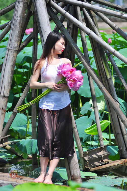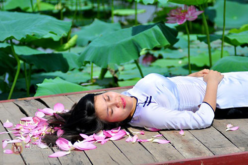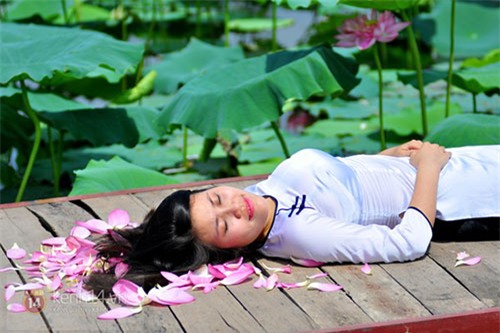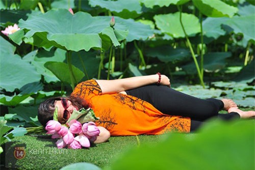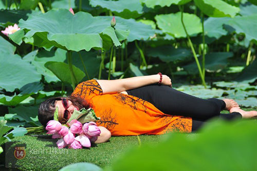 ... Cho đến các bạn nữ mặc áo dài đều tạo được bức ảnh ấn tượng trong đầm sen. |
