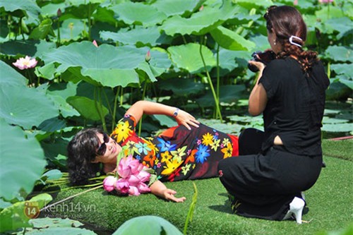Để có được những bức ảnh đẹp, ấn tượng với hoa sen nhiều người đã nảy ra nhiều ý tưởng "tạo dáng" táo bạo dưới thời tiết nắng nóng gay gắt: thả nút buộc áo yếm, dội nước ướt toàn thân, nằm dưới sàn gỗ nóng...