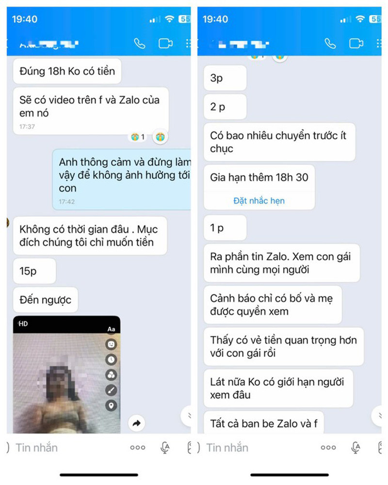 Theo lời kể của Trung tá Huy, vào khoảng 16h ngày 23/7, ông D. (46 tuổi, trú tại phường Việt Hưng) bất ngờ nhận được tin nhắn Zalo từ tài khoản của con gái - cháu X. (sinh năm 2007). Tin nhắn yêu cầu chuyển ngay 300 triệu đồng, kèm đoạn clip con gái ông đang trong tình trạng không mảnh vải che thân.