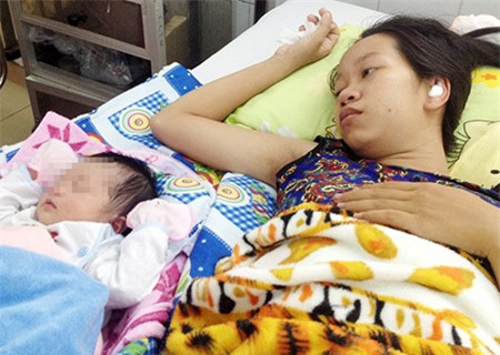 Mẹ con chị Ly khi còn điều trị tại Bệnh viện Phú Quốc. Ảnh: Việt Tường. |