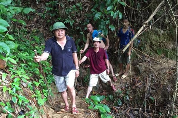 Thiếu tướng Hồ Sỹ Tiến và cán bộ Cục Cảnh sát hình sự vượt đồi núi để vào hiện trường vụ sát hại 4 người ở Nghệ An. |
