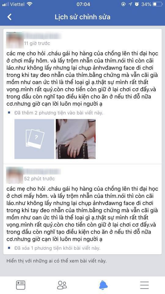 Người thím tố cháu gái của chồng lên thi đại học ở chơi mấy hôm và lấy trộm nhẫn. Cô cháu này còn chụp ảnh đăng Facebook, tay đeo nhẫn của thím. Thay vì mắng cô cháu thì cư dân mạng lại bất ngờ phản ứng vì tìm ra được một điểm khác thường.