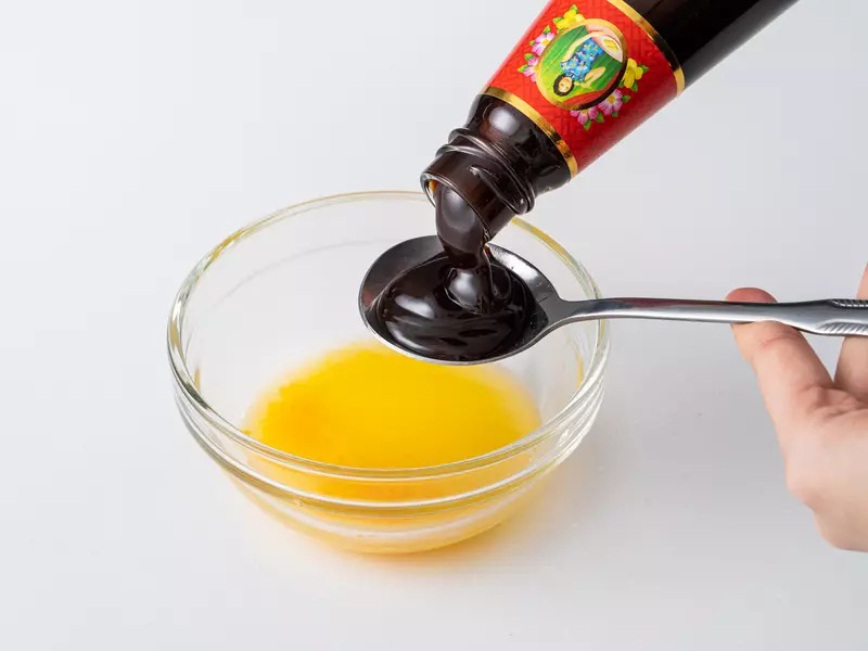Bước 3: Thêm vỏ cam, đường, dầu hào vào bát nước cam khuấy đều rồi để sang một bên.