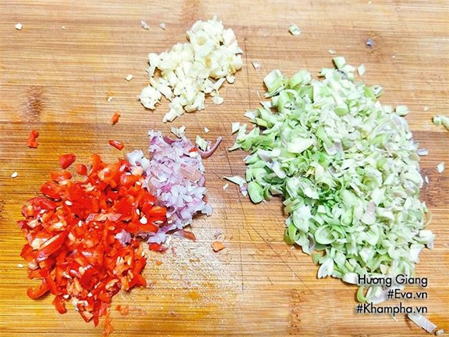 Bước 2: Sả tước bỏ bớt lá già bên ngoài sau đó rửa sạch, đập dập rồi băm nhỏ. Ớt bỏ hạt hoặc để nguyên rồi băm nhỏ. Hành tỏi bóc sạch vỏ cũng đem băm nhỏ.