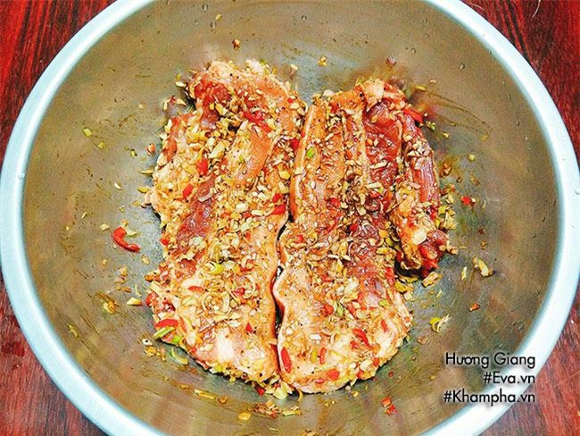 Bước 4: Đeo bao tay và xoa bóp đều khắp miếng thịt để thịt ngấm đều gia vị. Ướp thịt qua đêm hoặc ít nhất 4 tiếng.
