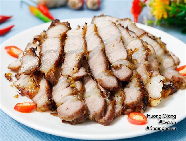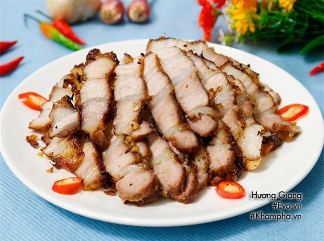 Thái thịt ba chỉ nướng sả ớt thành những miếng mỏng vừa ăn, bày ra đĩa thưởng thức với cơm hoặc bún đều rất ngon.