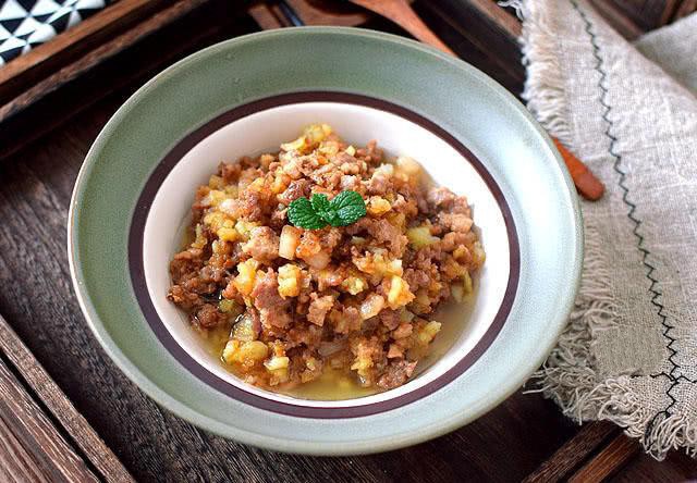 Thịt bằm rim mặn là món ăn quen thuộc, đơn giản và dễ chế biến. Không chỉ trẻ nhỏ mà cả người lớn đều rất thích món ăn này. Khi xào thịt bằm với khoai tây sẽ làm cho món ăn thêm mềm và ngon hơn rất nhiều. Món ăn này mà ăn với cơm nóng vào mùa lạnh thì rất hợp.