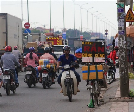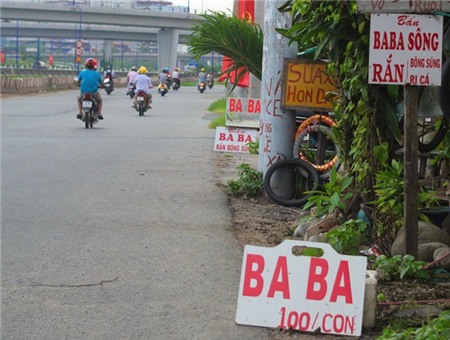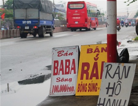 Ngay tuyến đường Xa Lộ Hà Nội, đoạn qua quận 2, rắn và ba ba cùng được bày bán nhộn nhịp.