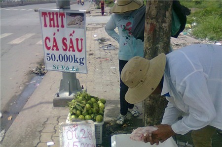 hiệu của nhiều người bán thịt cá sấu bên đường. Giá bán của loài bò sát