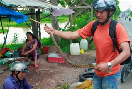 Các loại rắn, ếch cũng được đem lên phố bán rong nhiều nơi từ nội thành ra ngoại thành.