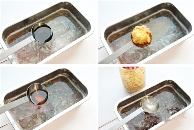 Thêm nước tương, tỏi băm, rượu vào nước ép táo hành.