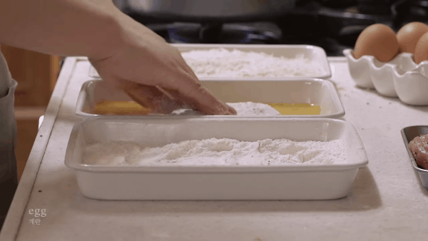 Rồi lăn qua phần trứng đã được đánh tan.