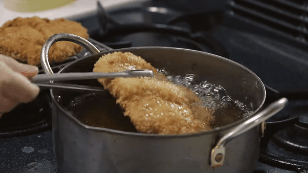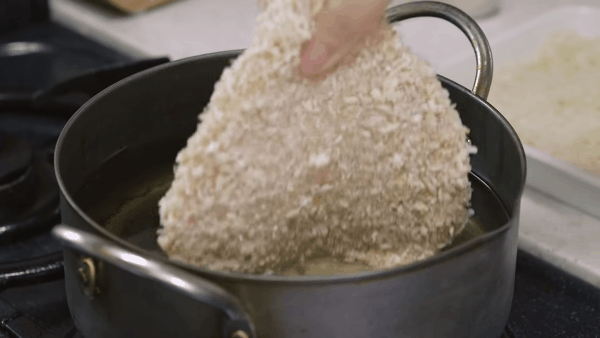 Đun nóng dầu ăn trong chảo sâu lòng hoặc nồi. Thả miếng thịt vào khi dầu sôi.